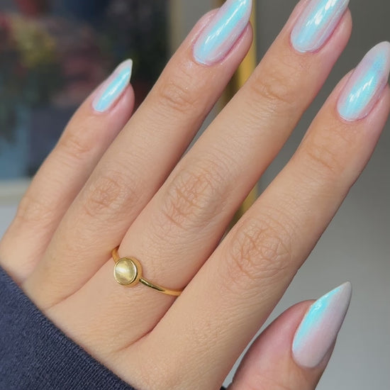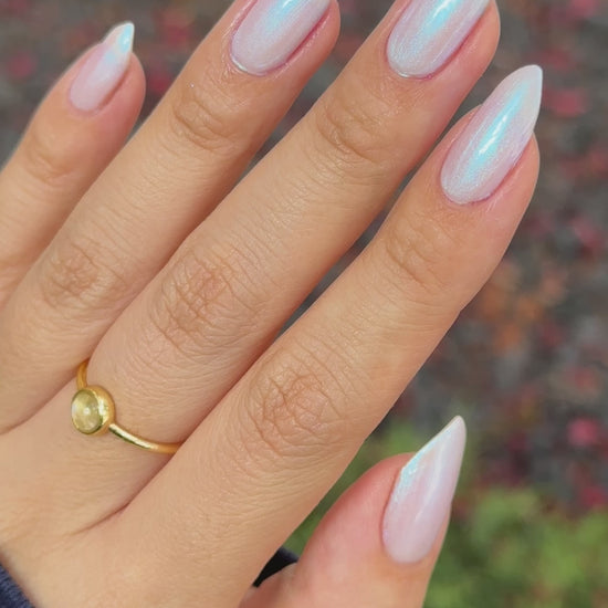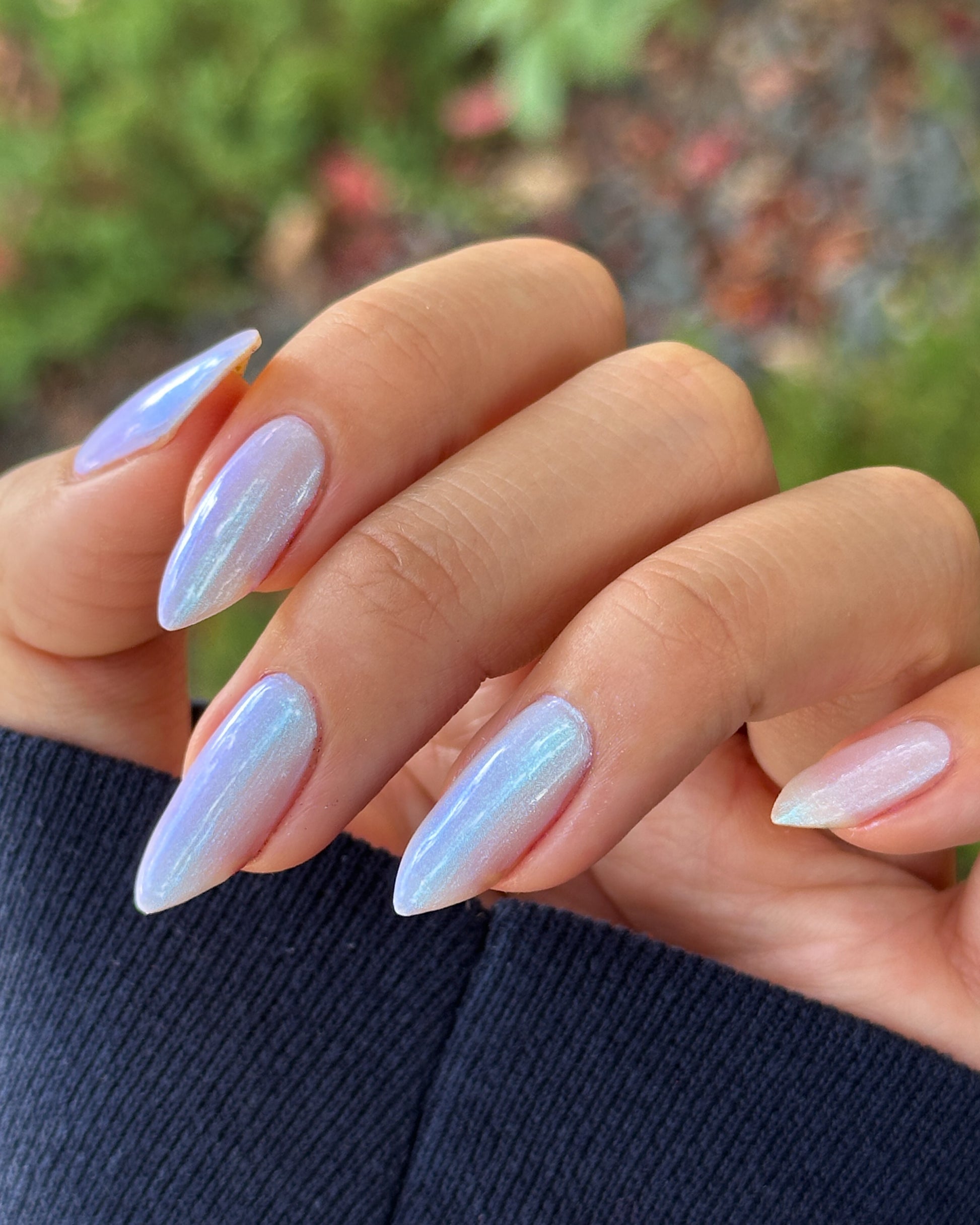 A smoky gray base with aqua to blue to indigo shifting shimmer.