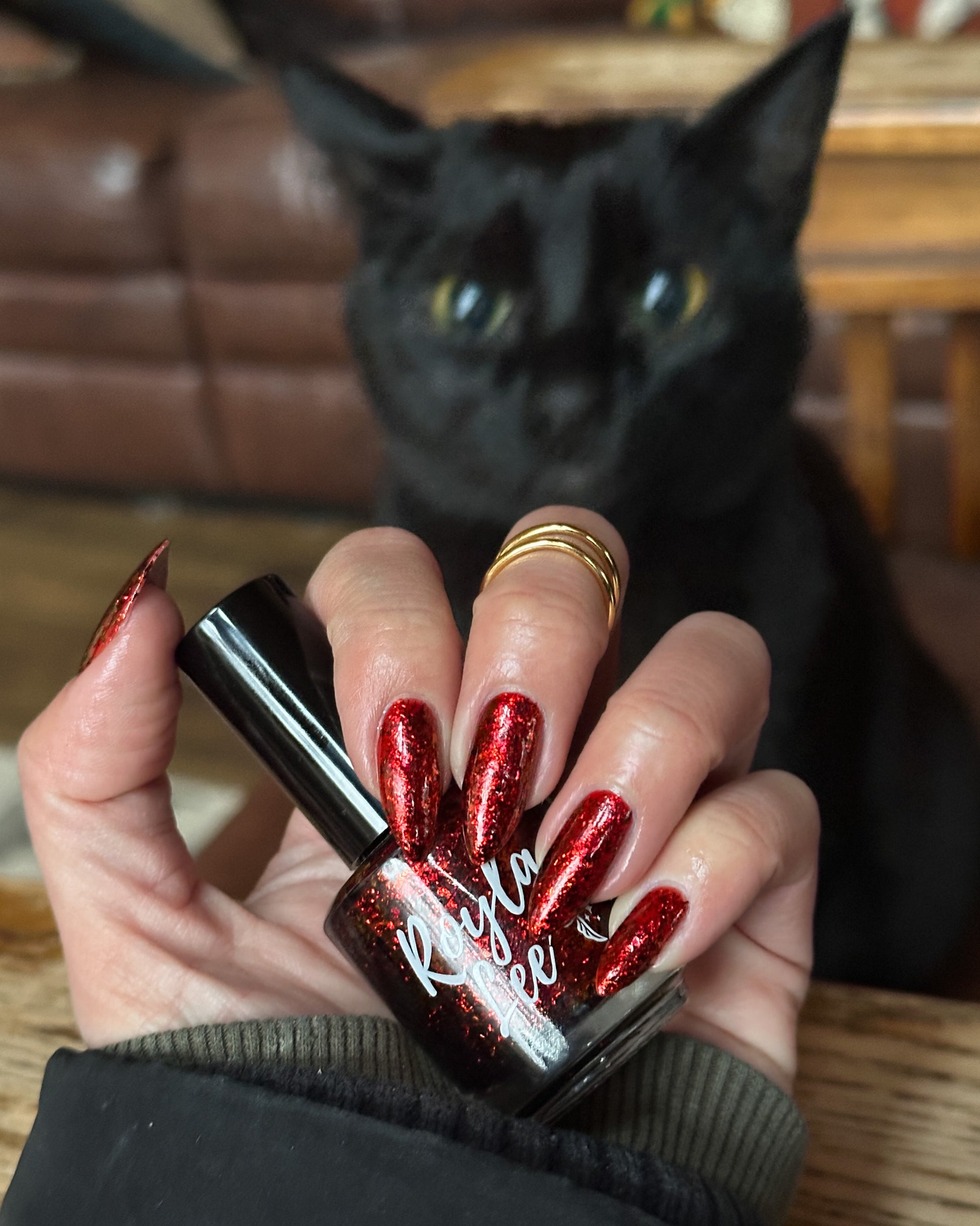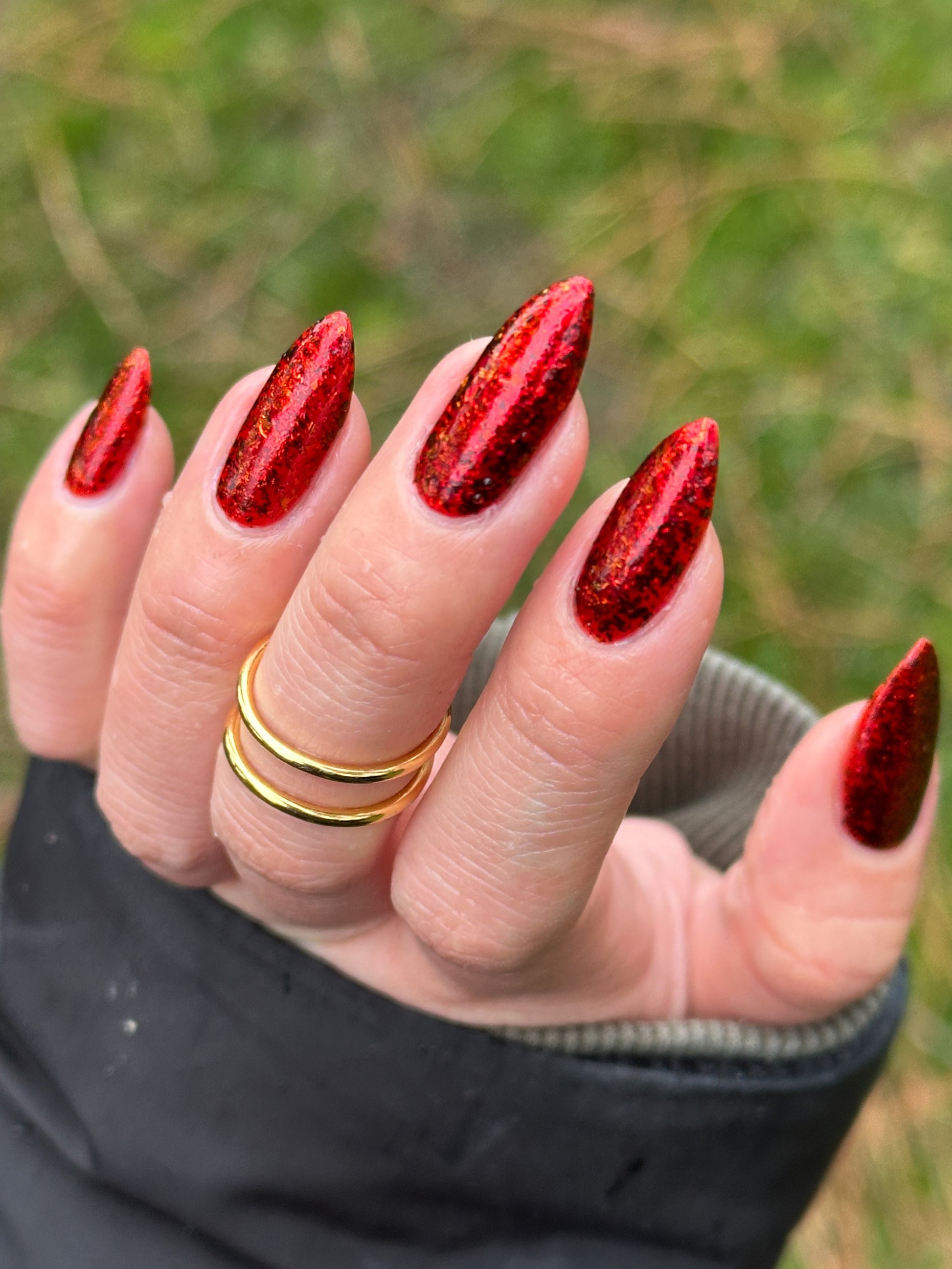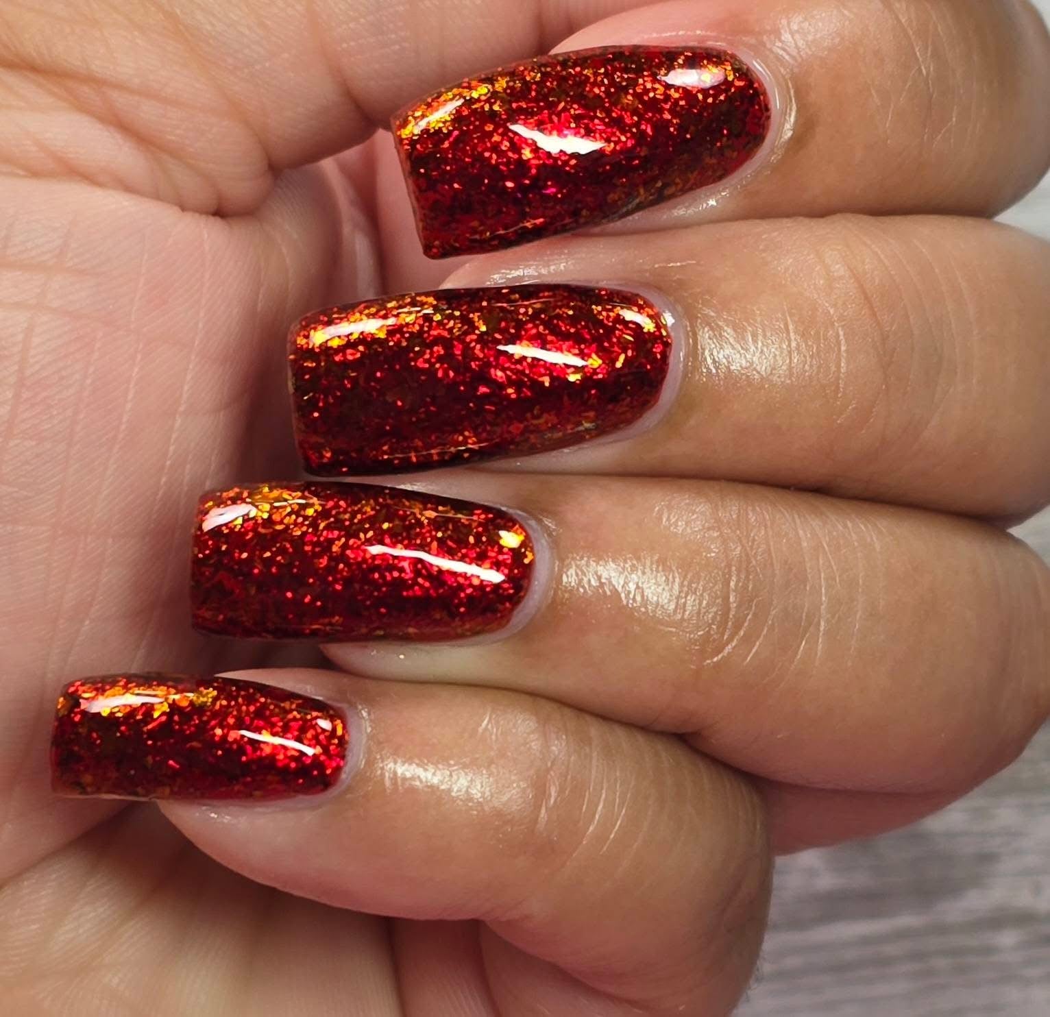 A red base with red to gold ucc flakes